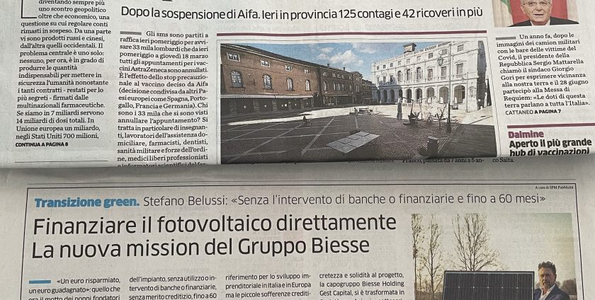 23 Marzo 2021, il quotidiano Eco di Bergamo che parla di transizione al green come un investimento sicuro, e noi come gruppo ci siamo. se chi lo realizza lo finanzia anche ... noi, l'unico Gruppo in grado di realizzare, finanziare fino 60 mesi e mantenere gli impianti fotovoltaici senza l'utilizzo del credito bancario.